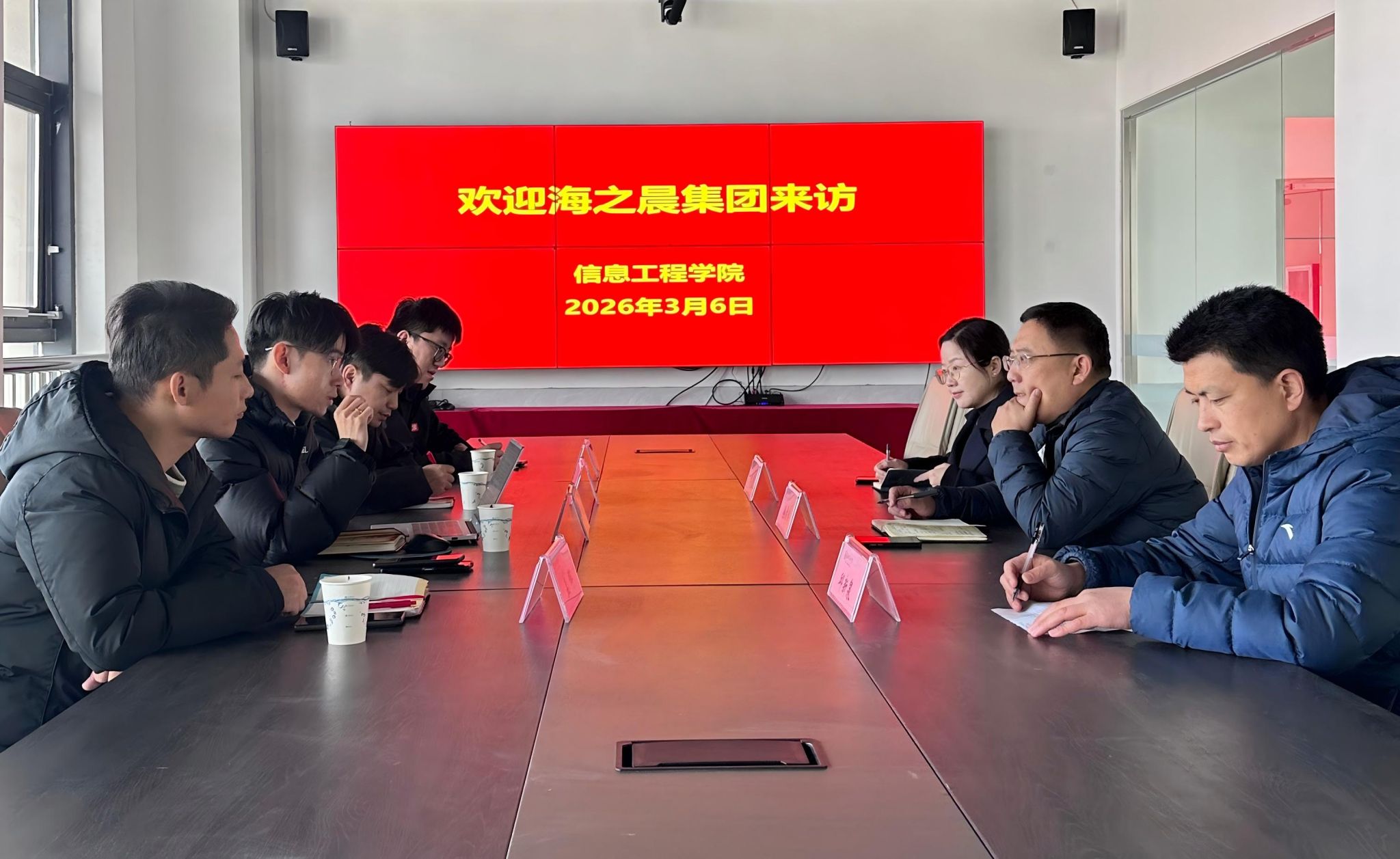 3月6日下午,海之晨集团销售总监秦向阳、技术总监毛海龙等一行4人到信息工程学院考察交流。信息工程学院主要负责人及相关专业教师参加座谈活动。信息工程学院主要负责人对秦向阳一行的到来表示热烈欢迎,并介绍了信息工程学院的专业设置、办学成果,重点介绍了师资团队、人才培养模式以及近年来在学生技能竞赛和校企合作中已取得的成果。秦向阳对信息工程学院的专业建设成果和人才培养质量给予高度赞赏,介绍了海之晨集团的企业文化、业务板块及人才需求等概况。最后双方就订单人才培养、校内实训室建设、人工智能大模型建设等合作内容展开深入研讨,初步达成合作意向和共识。会后,座谈会人员一同参观了信息工程学院人工智能产教融合实训基地。下一步,信息工程学院将与该企业建立对接联系机制,充分激活校企双方资源优势,促进合作项目落地并取得实效。(赵珍 黄静供稿)